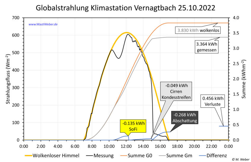 Kondensstreifen reduzieren zum Vergleich die Strahlung um etwa 1%, die Abschattung durch die Berge dagegen um 7%.